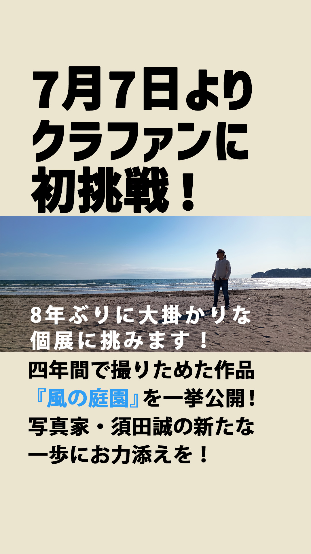 写真家・須田誠の新たなる挑戦に温かいお力添えをいただけますと幸いです。